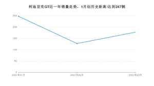 2021年3月,柯迪亚克GT销量为177辆,同比下降37.23%,环比增长39.37%。1-3月份,柯迪亚克GT销量为551辆,同比下降33.77%。在最近1年中,柯迪亚克GT销量在2021年01月达到最高,销量为247辆。