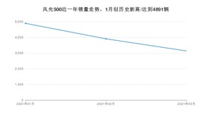 2021年3月,风光500销量为3132辆,环比下降19.77%。1-3月份,风光500销量为11927辆,在最近1年中,风光500销量在2021年01月达到最高,销量为4891辆。