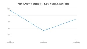 2021年3月,Aion LX销量为103辆,同比下降61.85%,环比增长110.2%。1-3月份,Aion LX销量为294辆,同比下降47.69%。在最近1年中,Aion LX销量在2021年01月达到最高,销量为142辆。