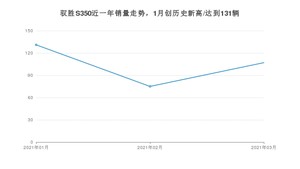2021年3月,驭胜S350销量为107辆,环比增长42.67%。1-3月份,驭胜S350销量为313辆,在最近1年中,驭胜S350销量在2021年01月达到最高,销量为131辆。