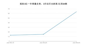 2021年3月,观致3销量为64辆,同比增长2%,环比增长326.67%。1-3月份,观致3销量为92辆,同比下降73.02%。在最近1年中,观致3销量在2021年03月达到最高,销量为64辆。
