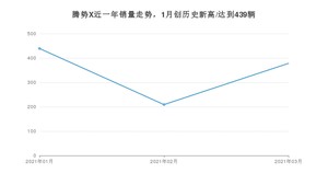 2021年3月,腾势X销量为378辆,同比增长84.39%,环比增长80.86%。1-3月份,腾势X销量为1026辆,同比增长117.37%。在最近1年中,腾势X销量在2021年01月达到最高,销量为439辆。