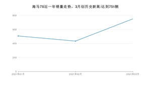 2021年3月,海马7X销量为751辆,环比增长73.04%。1-3月份,海马7X销量为1692辆,在最近1年中,海马7X销量在2021年03月达到最高,销量为751辆。