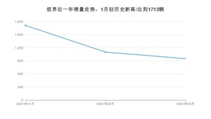 2021年3月,炫界销量为951辆,环比下降13.62%。1-3月份,炫界销量为3765辆,在最近1年中,炫界销量在2021年01月达到最高,销量为1713辆。