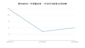 2021年3月,哪吒N01销量为10辆,同比下降98.35%,环比增长42.86%。1-3月份,哪吒N01销量为41辆,同比下降97.64%。在最近1年中,哪吒N01销量在2021年01月达到最高,销量为24辆。