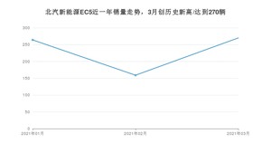 2021年3月,北汽新能源品牌总体销量达到2559辆,其中北汽新能源EC5销量达到270辆,占品牌总销量的10.55%。