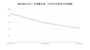 2021年3月,BEIJING-U7销量为42辆,同比下降86%,环比下降27.59%。1-3月份,BEIJING-U7销量为186辆,同比下降79.4%。在最近1年中,BEIJING-U7销量在2021年01月达到最高,销量为86辆。