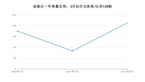 2021年3月,战旗销量为128辆,同比增长1%,环比增长156%。1-3月份,战旗销量为283辆,同比增长1%。在最近1年中,战旗销量在2021年03月达到最高,销量为128辆。