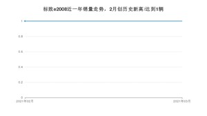 2021年3月,标致e2008销量为1辆,环比持平。1-3月份,标致e2008销量为2辆,在最近1年中,标致e2008销量在2021年02月达到最高,销量为1辆。