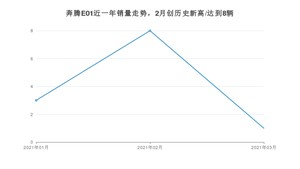 2021年3月,奔腾E01销量为1辆,环比下降87.5%。1-3月份,奔腾E01销量为12辆,在最近1年中,奔腾E01销量在2021年02月达到最高,销量为8辆。