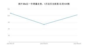 2021年3月,枫叶30x销量为124辆,同比增长416.67%,环比增长55%。1-3月份,枫叶30x销量为335辆,同比增长1%。在最近1年中,枫叶30x销量在2021年01月达到最高,销量为131辆。