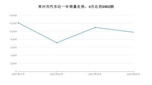 2021年4月,常州市汽车总销量为9802辆,同比增长16.01%,环比下降10.92%。1-4月份,常州市总销量为40140辆,同比增长59.58%。在最近1年中,常州市销量在2021年01月达到最高,销量为12155辆。