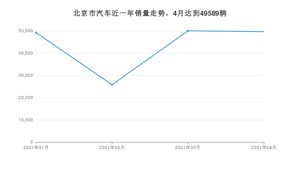 2021年4月,北京市汽车总销量为49589辆,同比增长20.5%,环比下降0.72%。1-4月份,北京市总销量为174407辆,同比增长50.02%。在最近1年中,北京市销量在2021年03月达到最高,销量为49950辆。
