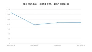2021年4月,黄山市汽车总销量为1301辆,同比增长17.42%,环比增长0.93%。1-4月份,黄山市总销量为5656辆,同比增长39.9%。在最近1年中,黄山市销量在2021年01月达到最高,销量为1903辆。