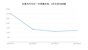 2021年4月,安康市汽车总销量为1252辆,同比增长2.71%,环比增长11.69%。1-4月份,安康市总销量为6744辆,同比增长30.02%。在最近1年中,安康市销量在2021年01月达到最高,销量为3014辆。
