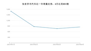 2021年4月,张家界市汽车总销量为851辆,同比增长7.31%,环比增长11.1%。1-4月份,张家界市总销量为4185辆,同比增长20.22%。在最近1年中,张家界市销量在2021年01月达到最高,销量为1693辆。