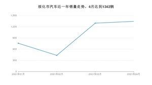 2021年4月,绥化市汽车总销量为1342辆,同比增长18.24%,环比增长3.71%。1-4月份,绥化市总销量为3823辆,同比增长26.59%。在最近1年中,绥化市销量在2021年04月达到最高,销量为1342辆。