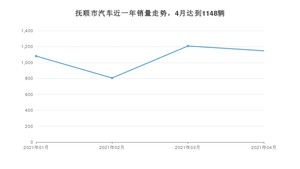 2021年4月,抚顺市汽车总销量为1148辆,同比增长8.51%,环比下降4.97%。1-4月份,抚顺市总销量为4243辆,同比增长56.4%。在最近1年中,抚顺市销量在2021年03月达到最高,销量为1208辆。