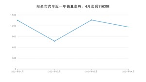 2021年4月,阳泉市汽车总销量为1163辆,同比下降0.26%,环比下降14.36%。1-4月份,阳泉市总销量为4641辆,同比增长34.99%。在最近1年中,阳泉市销量在2021年03月达到最高,销量为1358辆。