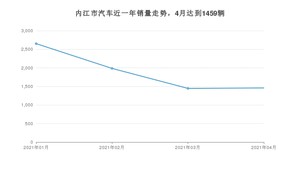 2021年4月,内江市汽车总销量为1459辆,同比增长11.72%,环比增长0.83%。1-4月份,内江市总销量为7543辆,同比增长38.23%。在最近1年中,内江市销量在2021年01月达到最高,销量为2652辆。
