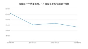 在国内市场上,宝骏在2021年4月的销量为13152辆,同比下降38.46%,环比下降20.9%。1-4月份,宝骏累计销量为70735辆,较去年同期下降17.51%。