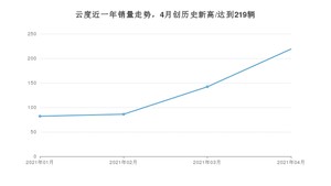具体来看,在SUV方面,4月云度的销量为219辆,同比增长1%,环比增长54.23%。1-4月份累计销量为529辆,较去年同期增长569.62%。