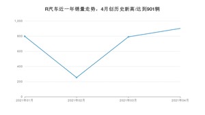 在国内市场上,R汽车在2021年4月的销量为901辆,环比增长14.05%。1-4月份,R汽车累计销量为2741辆