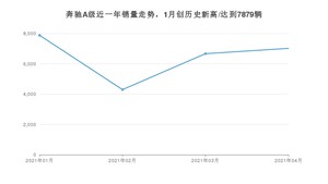 2021年4月,奔驰A级销量为7017辆,同比增长9.73%,环比增长5.27%。1-4月份,奔驰A级销量为25857辆,同比增长34.64%。在最近1年中,奔驰A级销量在2021年01月达到最高,销量为7879辆。