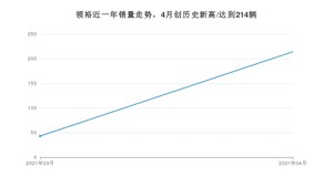 2021年4月,领裕销量为214辆,环比增长397.67%。1-4月份,领裕销量为257辆,在最近1年中,领裕销量在2021年04月达到最高,销量为214辆。