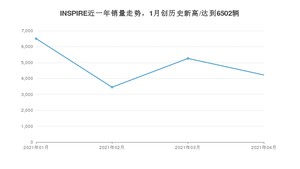 2021年4月,INSPIRE销量为4220辆,同比增长58.71%,环比下降19.76%。1-4月份,INSPIRE销量为19432辆,同比增长106%。在最近1年中,INSPIRE销量在2021年01月达到最高,销量为6502辆。