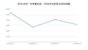 2021年4月,宝马1系销量为3177辆,同比下降9.51%,环比下降22.46%。1-4月份,宝马1系销量为15304辆,同比增长49.61%。在最近1年中,宝马1系销量在2021年01月达到最高,销量为5318辆。