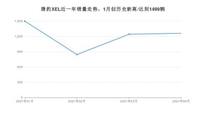 2021年4月,捷豹XEL销量为1261辆,同比增长23.63%,环比增长1.53%。1-4月份,捷豹XEL销量为4846辆,同比增长109.42%。在最近1年中,捷豹XEL销量在2021年01月达到最高,销量为1499辆。