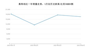 2021年4月,桑塔纳销量为16584辆,同比增长21.93%,环比下降5.99%。1-4月份,桑塔纳销量为63967辆,同比增长46.57%。在最近1年中,桑塔纳销量在2021年01月达到最高,销量为18201辆。