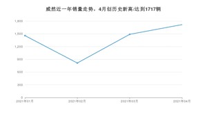 2021年4月,威然销量为1717辆,同比增长2%,环比增长15.39%。1-4月份,威然销量为5476辆,同比增长6%。在最近1年中,威然销量在2021年04月达到最高,销量为1717辆。