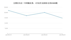 2021年4月,五菱宏光销量为14688辆,同比下降8.78%,环比下降26.71%。1-4月份,五菱宏光销量为73720辆,同比增长28.63%。在最近1年中,五菱宏光销量在2021年01月达到最高,销量为21955辆。