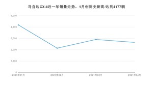 2021年4月,马自达CX-4销量为2640辆,同比下降48.45%,环比下降8.84%。1-4月份,马自达CX-4销量为11844辆,同比下降8.14%。在最近1年中,马自达CX-4销量在2021年01月达到最高,销量为4177辆。