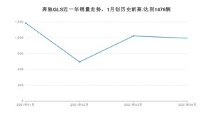 2021年4月,奔驰GLS销量为1189辆,同比下降34.88%,环比下降3.49%。1-4月份,奔驰GLS销量为4637辆,同比增长10.77%。在最近1年中,奔驰GLS销量在2021年01月达到最高,销量为1476辆。