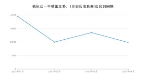 2021年4月,锐际销量为1954辆,同比下降50.51%,环比下降27.39%。1-4月份,锐际销量为10527辆,同比增长52.5%。在最近1年中,锐际销量在2021年01月达到最高,销量为3896辆。