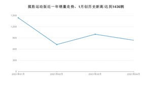 2021年4月,揽胜运动版销量为836辆,同比增长4.37%,环比下降16.15%。1-4月份,揽胜运动版销量为3990辆,同比增长58.21%。在最近1年中,揽胜运动版销量在2021年01月达到最高,销量为1436辆。