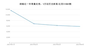 2021年4月,缤越销量为5865辆,同比增长1.96%,环比下降5.72%。1-4月份,缤越销量为30476辆,同比增长37.23%。在最近1年中,缤越销量在2021年01月达到最高,销量为11561辆。
