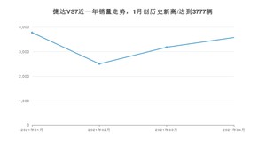 2021年4月,捷达VS7销量为3577辆,同比增长8.66%,环比增长12.48%。1-4月份,捷达VS7销量为13035辆,同比增长126.5%。在最近1年中,捷达VS7销量在2021年01月达到最高,销量为3777辆。