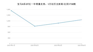 2021年4月,宝马品牌总体销量达到73507辆,其中宝马6系GT销量达到1262辆,占品牌总销量的1.72%。