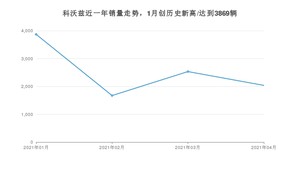 2021年4月,科沃兹销量为2037辆,同比下降12.91%,环比下降19.58%。1-4月份,科沃兹销量为10111辆,同比增长29%。在最近1年中,科沃兹销量在2021年01月达到最高,销量为3869辆。