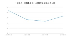 2021年4月,幻影销量为10辆,同比下降16.67%,环比增长42.86%。1-4月份,幻影销量为38辆,同比增长31.03%。在最近1年中,幻影销量在2021年01月达到最高,销量为13辆。