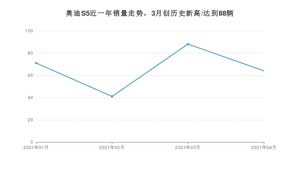 2021年4月,奥迪S5销量为64辆,同比增长3%,环比下降27.27%。1-4月份,奥迪S5销量为264辆,同比增长1%。在最近1年中,奥迪S5销量在2021年03月达到最高,销量为88辆。