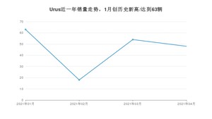 2021年4月,Urus销量为48辆,同比增长300%,环比下降11.11%。1-4月份,Urus销量为183辆,同比增长438.24%。在最近1年中,Urus销量在2021年01月达到最高,销量为63辆。