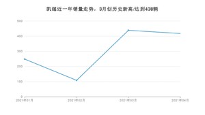 2021年4月,凯越销量为417辆,同比下降8.95%,环比下降4.79%。1-4月份,凯越销量为1211辆,同比下降23.21%。在最近1年中,凯越销量在2021年03月达到最高,销量为438辆。