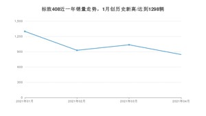 2021年4月,标致408销量为844辆,同比下降11.81%,环比下降18.45%。1-4月份,标致408销量为4104辆,同比增长82.24%。在最近1年中,标致408销量在2021年01月达到最高,销量为1298辆。