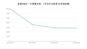 2021年4月,宝骏530销量为2807辆,同比下降31.97%,环比下降3.11%。1-4月份,宝骏530销量为16252辆,同比增长30.26%。在最近1年中,宝骏530销量在2021年01月达到最高,销量为6963辆。