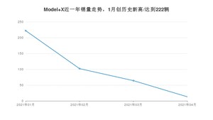 2021年4月,Model X销量为13辆,同比下降95.78%,环比下降79.69%。1-4月份,Model X销量为401辆,同比下降70.38%。在最近1年中,Model X销量在2021年01月达到最高,销量为222辆。